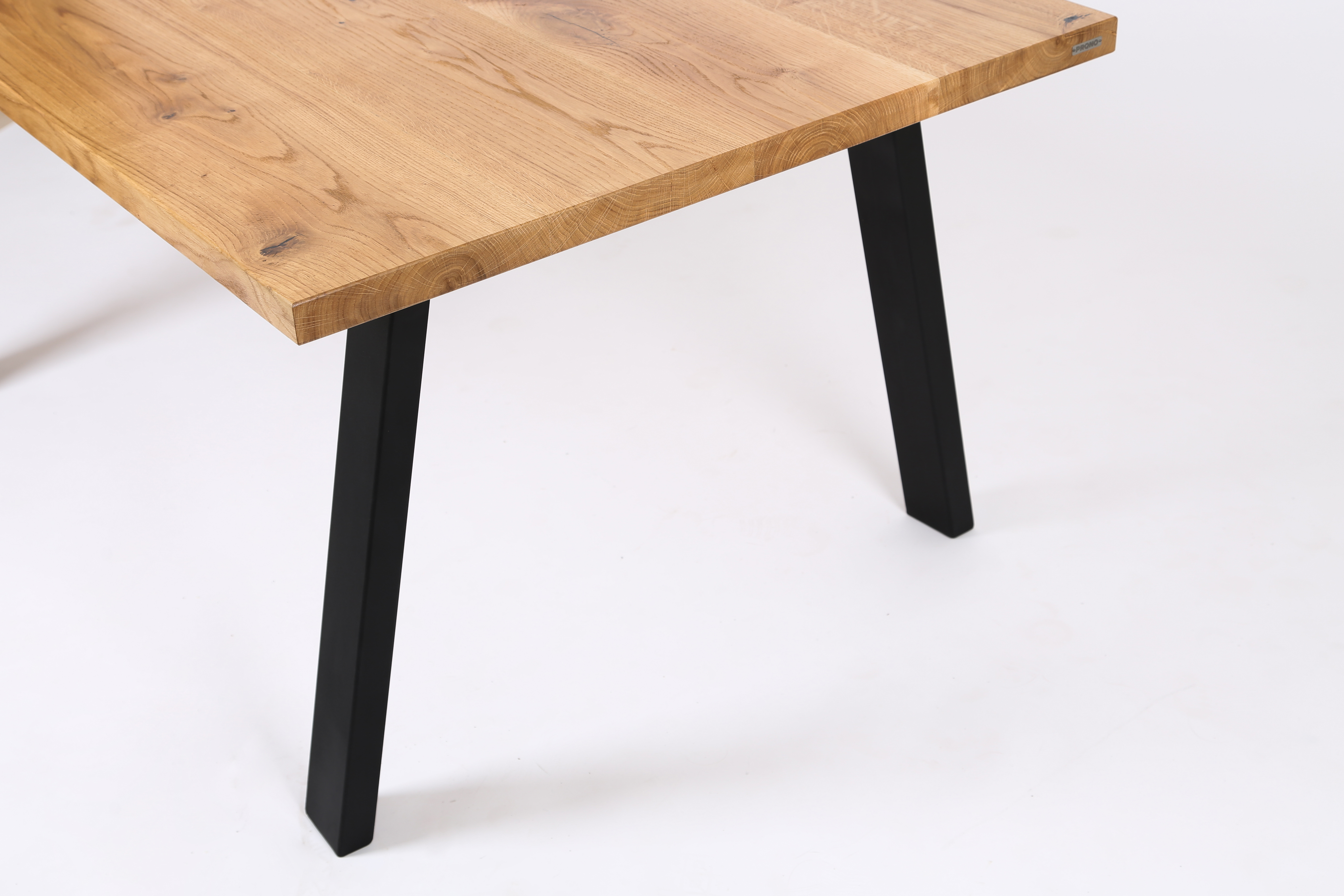 Není to jen kovová podnož, která se musí ošetřit. Nutné je ošetřit i masivní desku. My používáme tvrdovoskové oleje. Ty zvýrazní barvu dřeva a ochrání ho před vodou a nečistotami. Výhoda? Dřevo pořád dýchá a na dotek cítíte jeho strukturu.