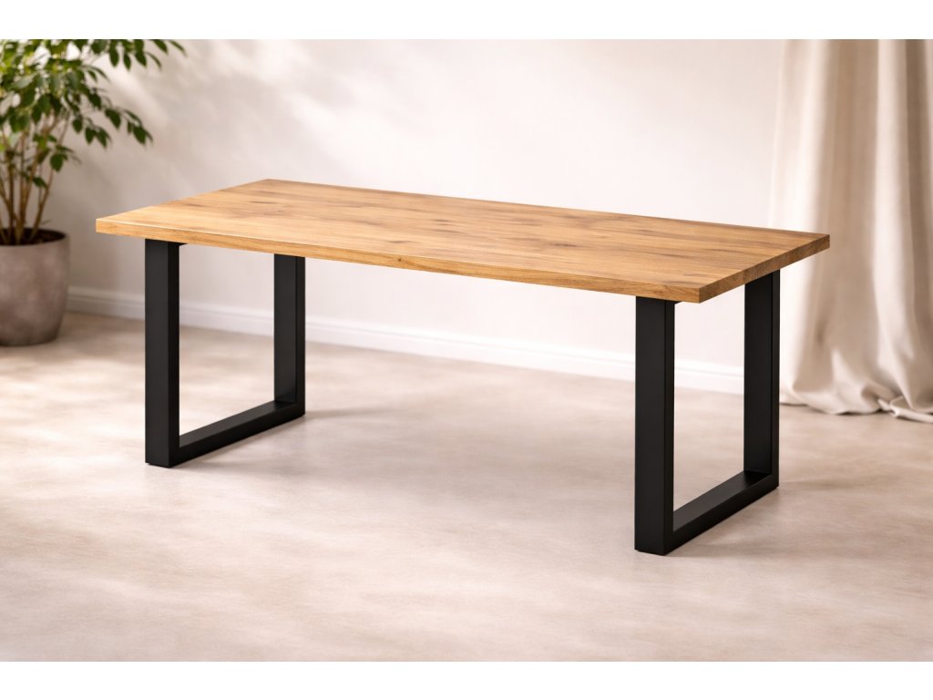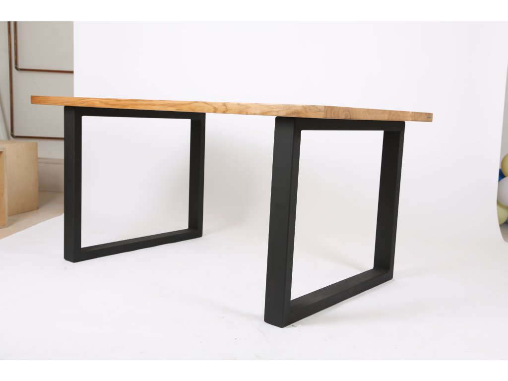 Jídelní stůl s masivní dubovou deskou a ocelovou podnoží do tvaru O