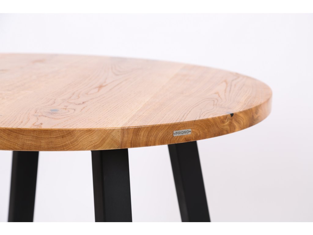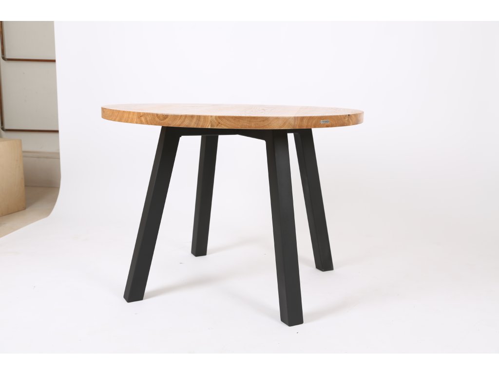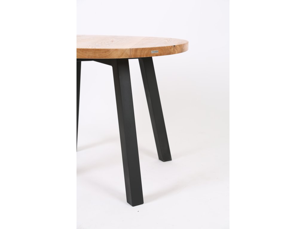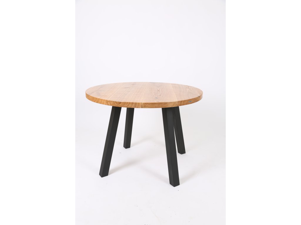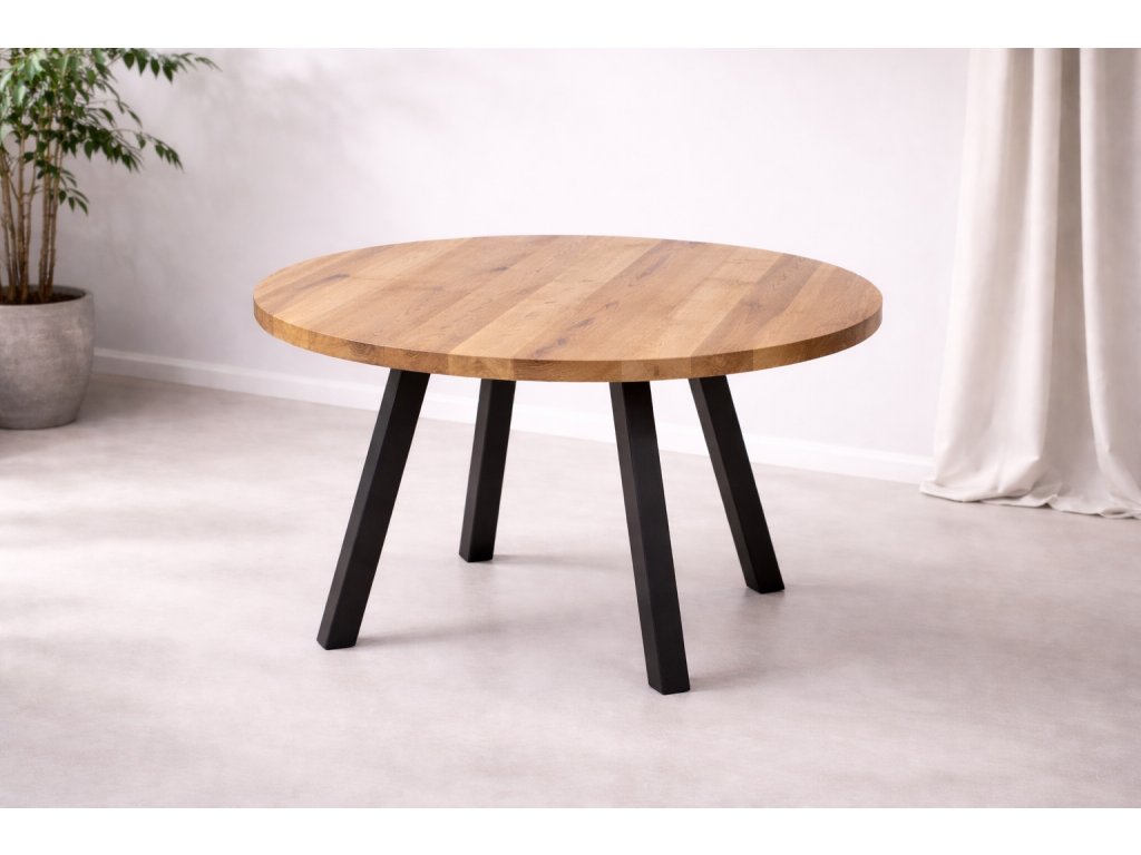 Kulatý jídelní stůl s dubovou deskou a ocelovou podnoží