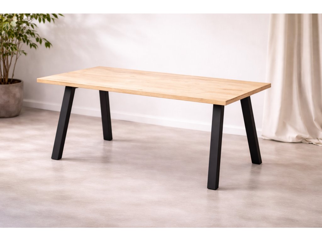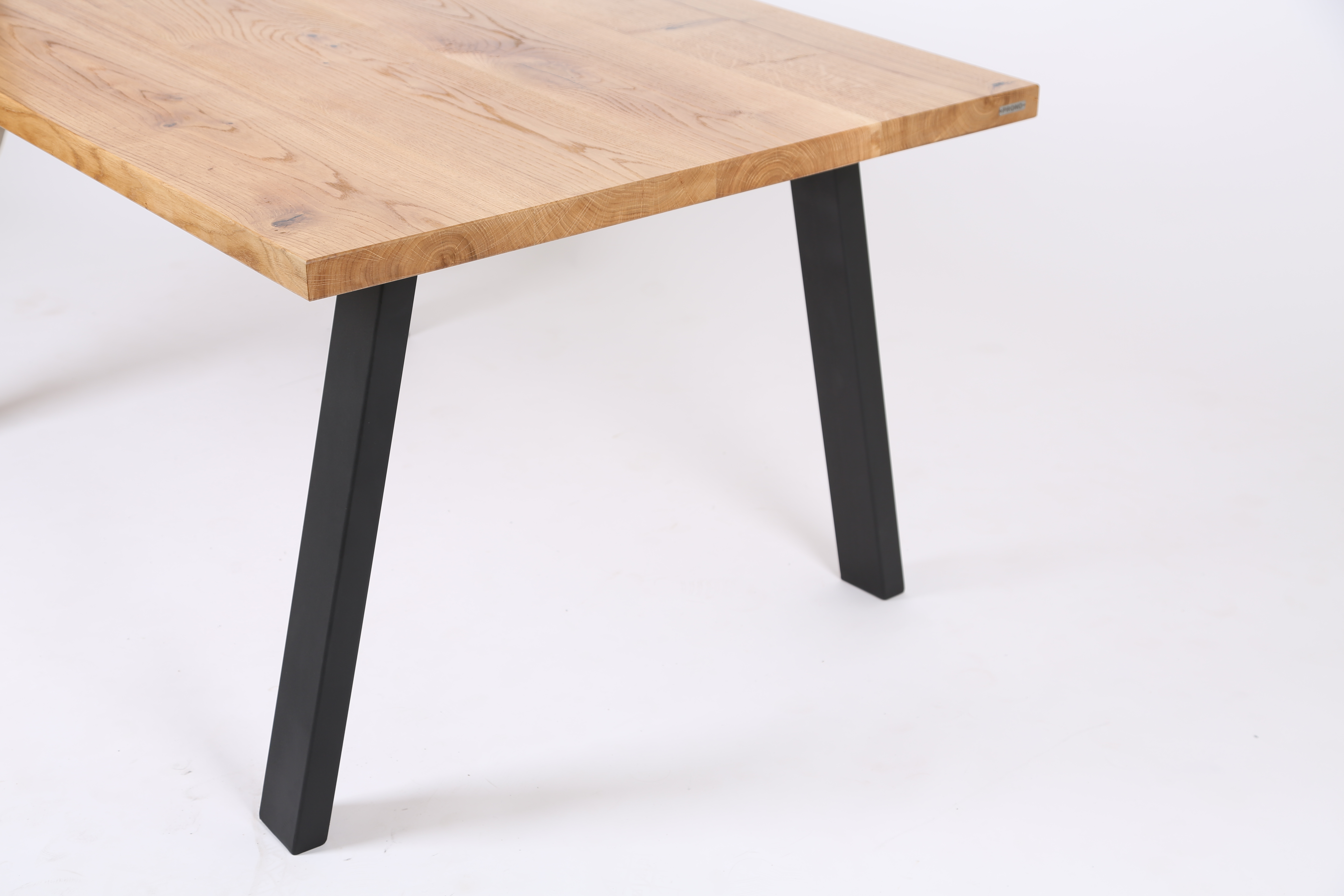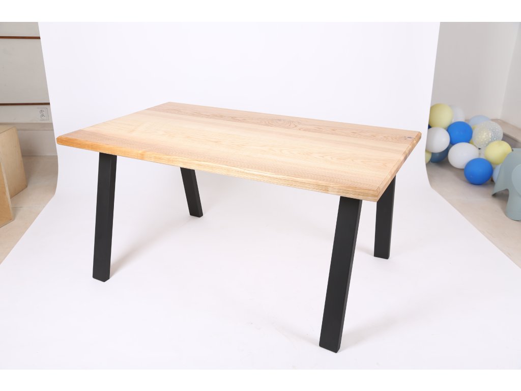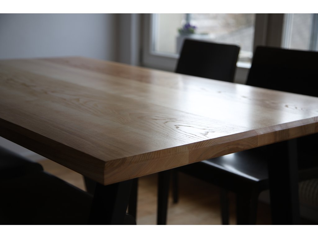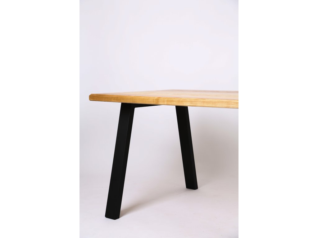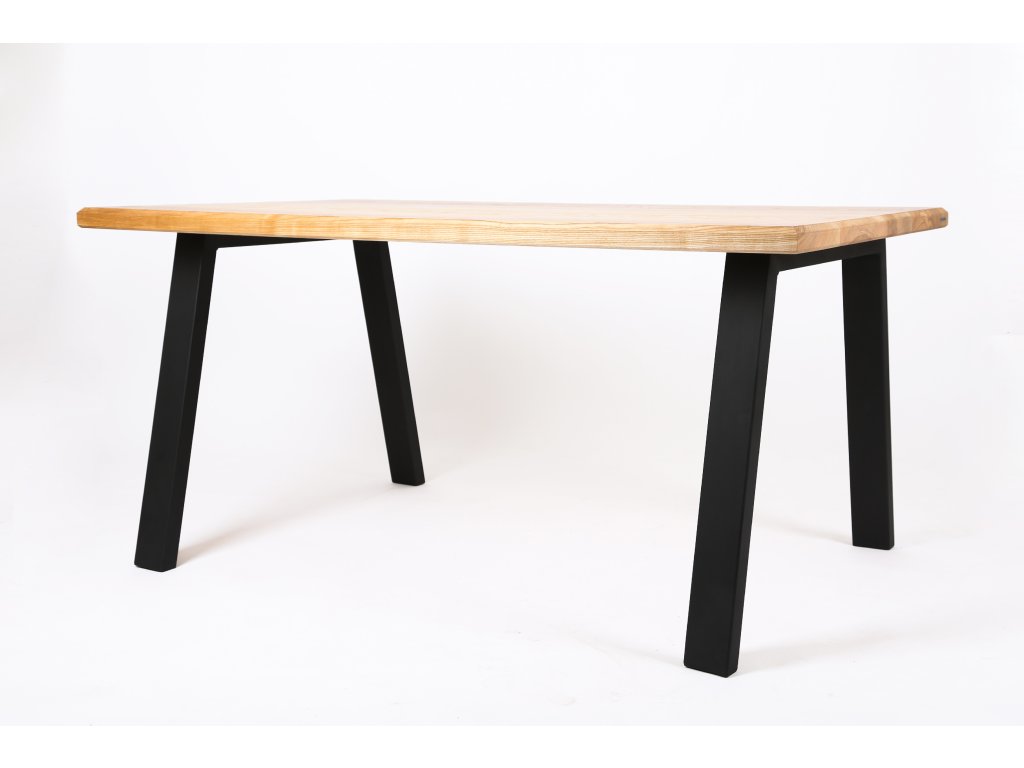 Jídelní stůl s masivní jasanovou deskou a ocelovou podnoží do tvaru V