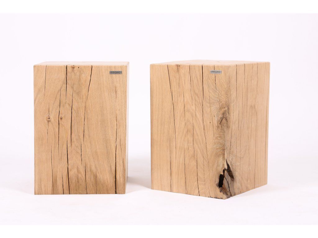 Multifunkční dubová kostka bez povrchové úpravy o průřezu 30x30 cm a výškou 42 cm.