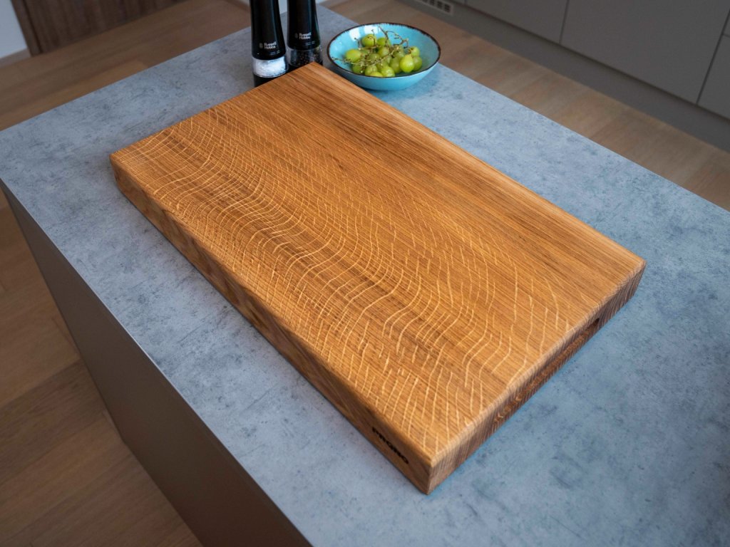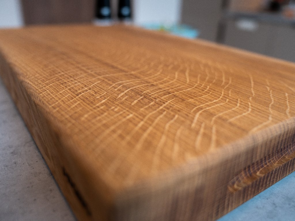 Kuchyňské prkénko MACEQ je ručně vyrobeno z jednoho kusu dubového dřeva. Každý kus je originál, díky kresbě dřeva.